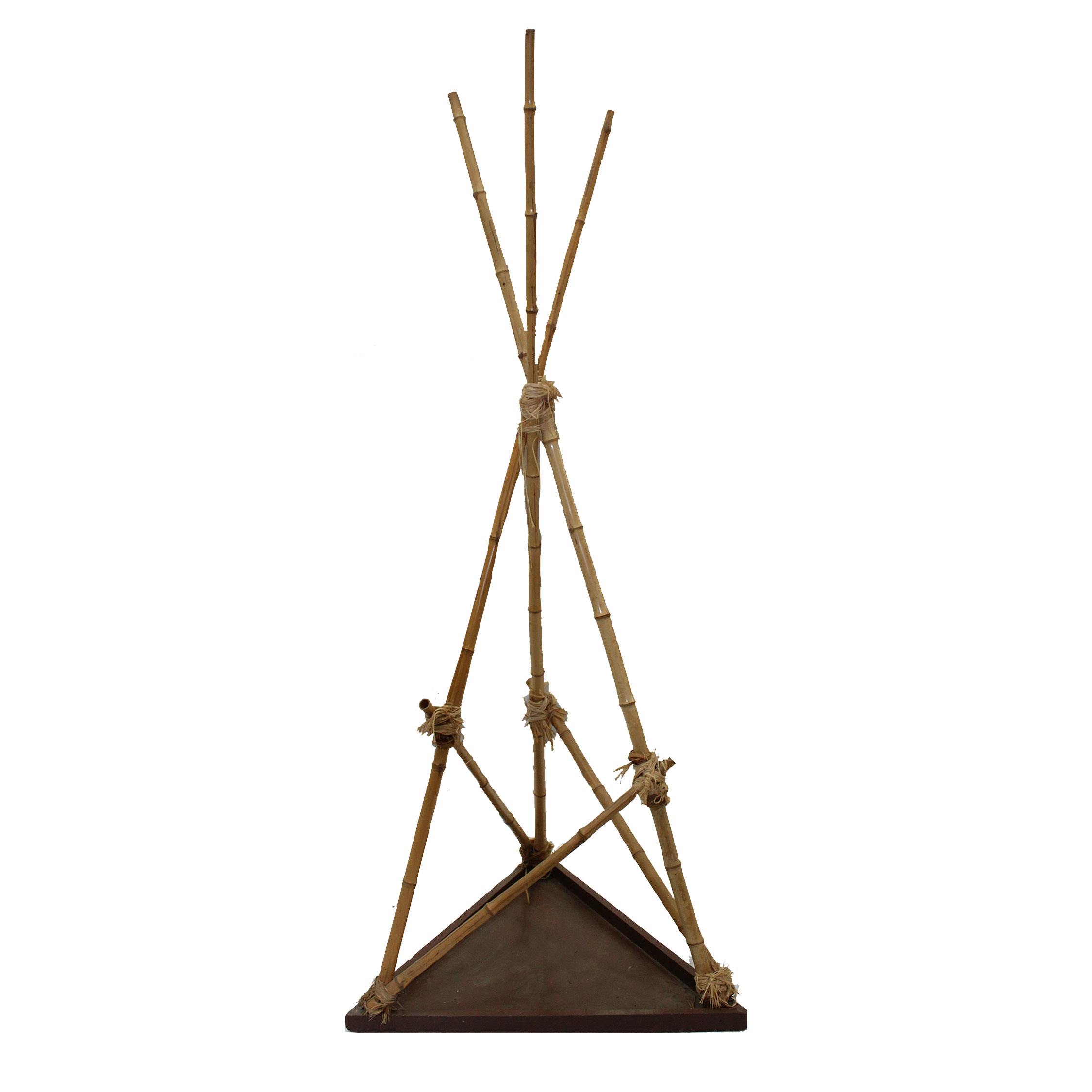 Bamboo rods with raffia accents. Can be accented with florals or décor.
