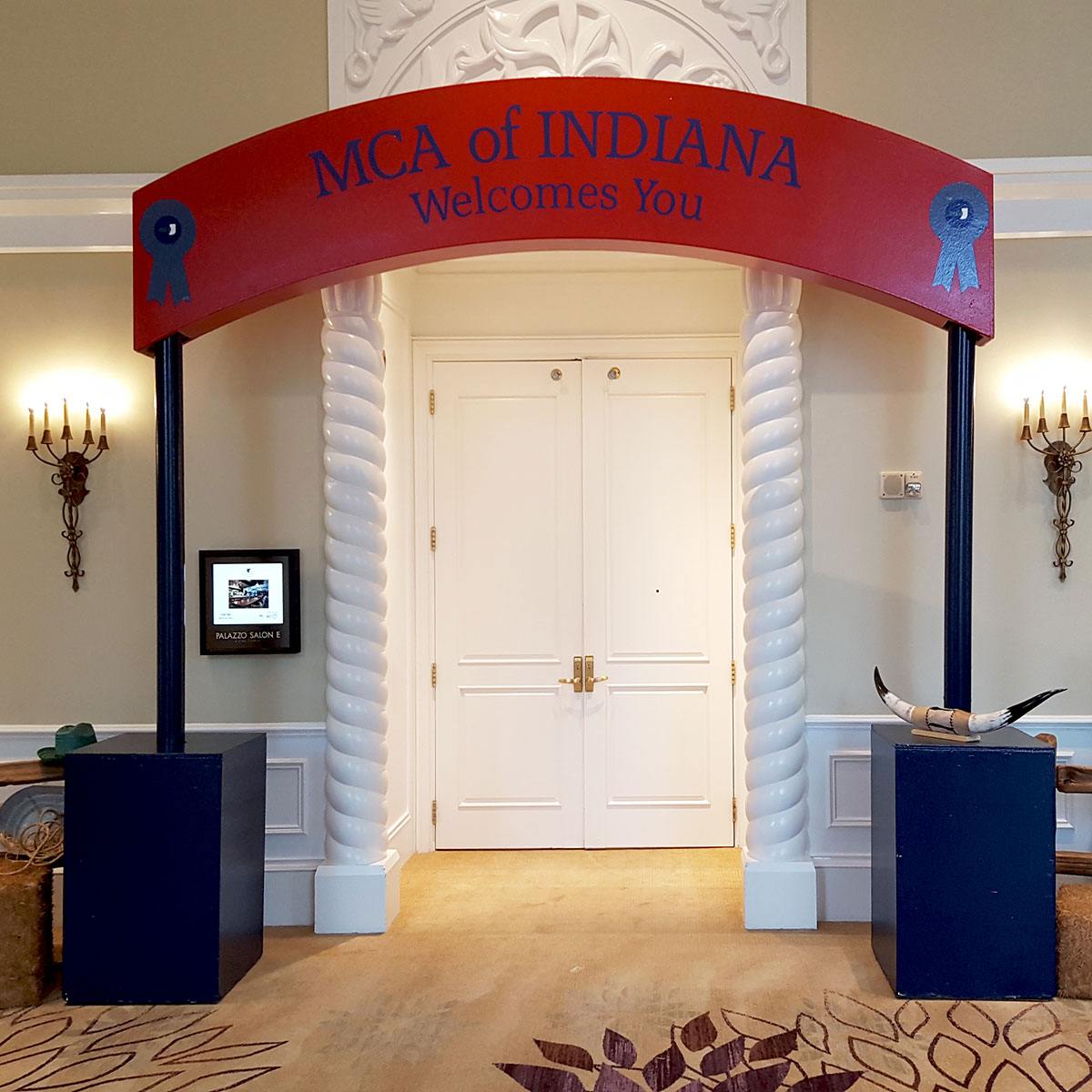 Double sided arch on box pedstals. Custom signage can be applied to top cross-piece. Custom paint upgrade option.