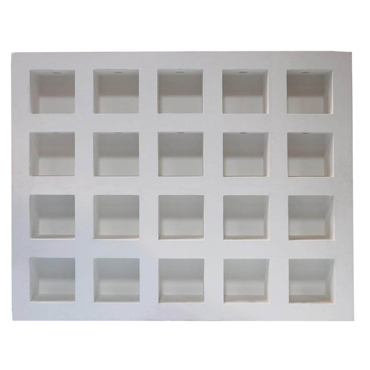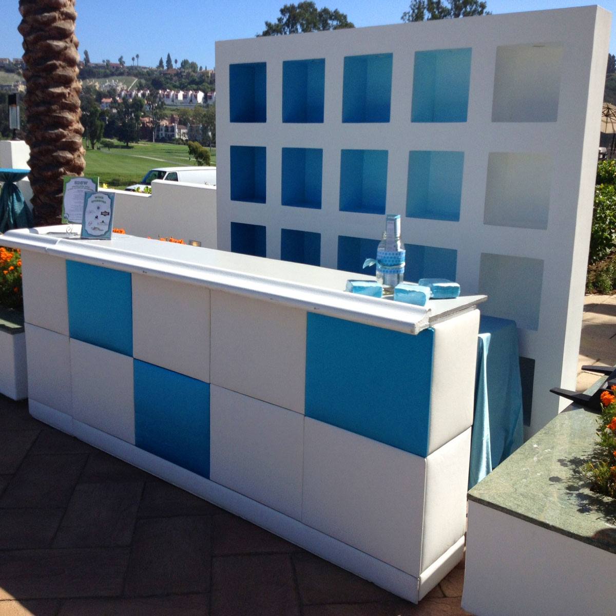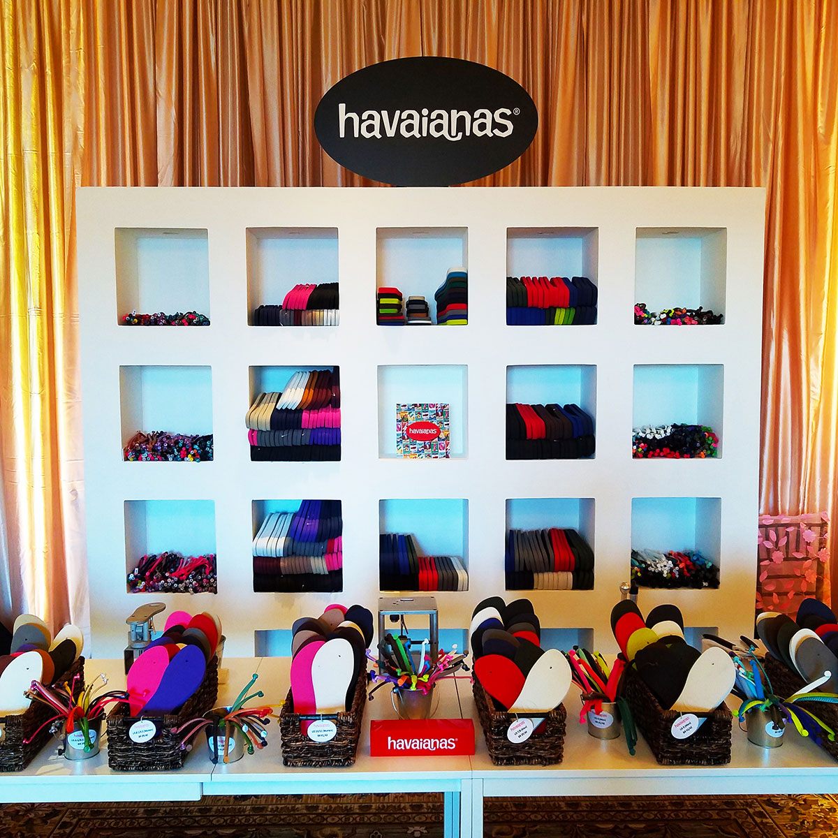 Solid display shelf with recessed cubbies for display. Cubby interiors can be custom painted. Tap lights adhered to top of cubbies optional for product highlighting.