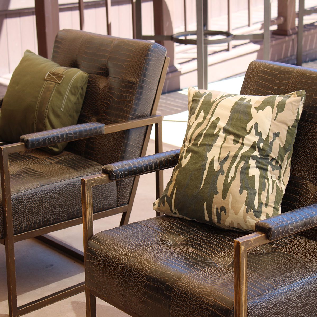 Alligator faux leather chair in chocolate with an antique bronze metal frame
