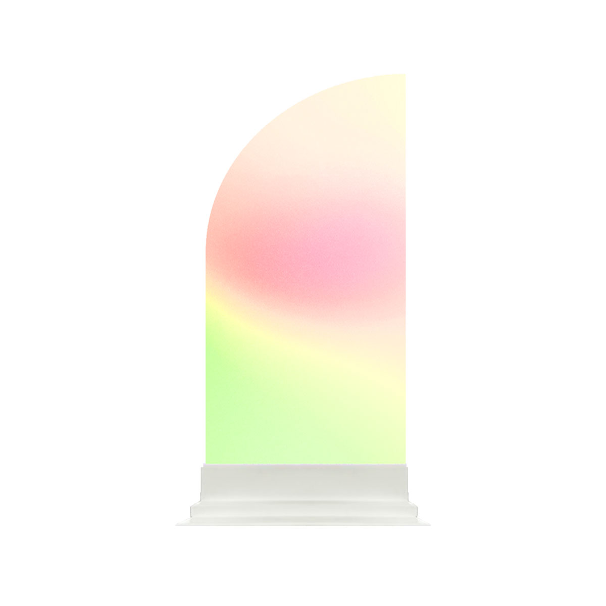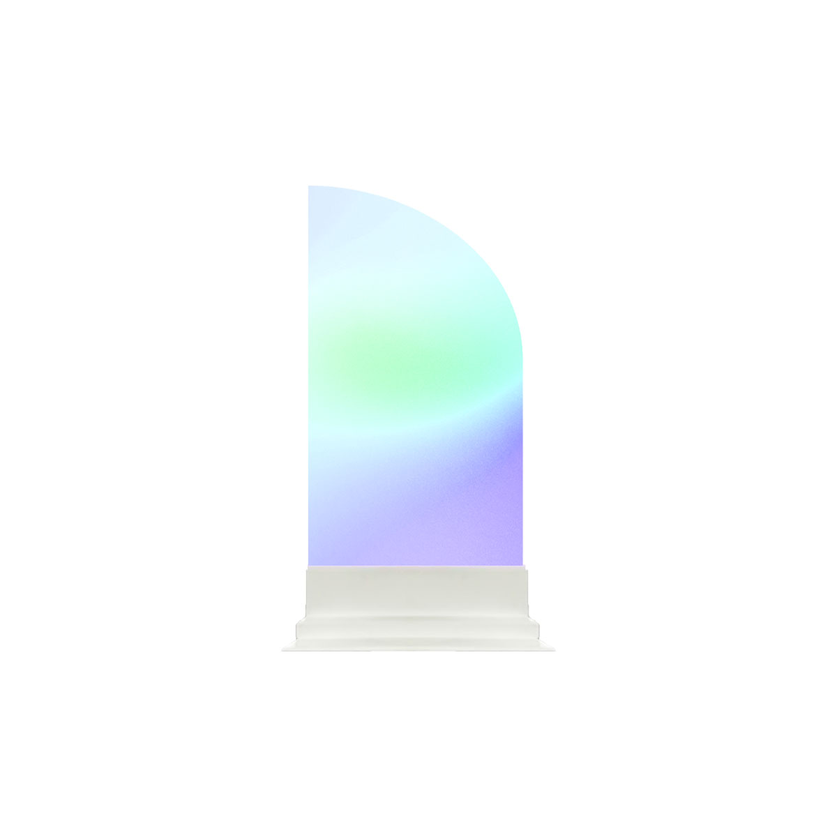 Curved panels with a semi-transparent irridescent finish. Can be customized with different materials / colors and branding. Can add complete trio set or by individual panel to your cart!