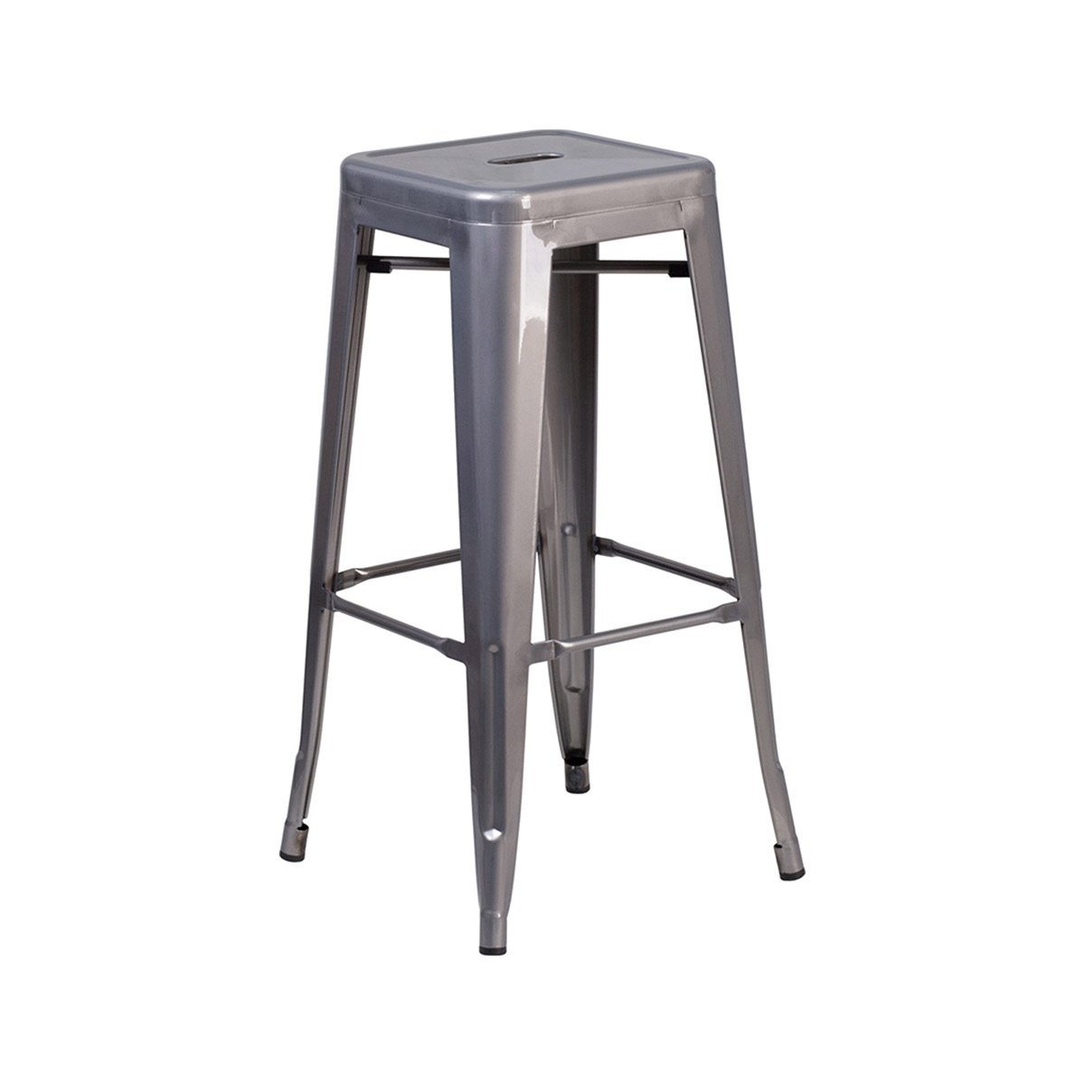 Metal bar stool with a gloss gunmetal finish.
