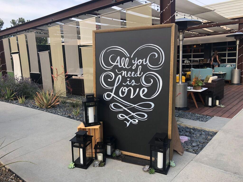 Wood framed chalkboard. Custom chalk art available by our artists. Perfect for menus, welcome or directional signage, displays.