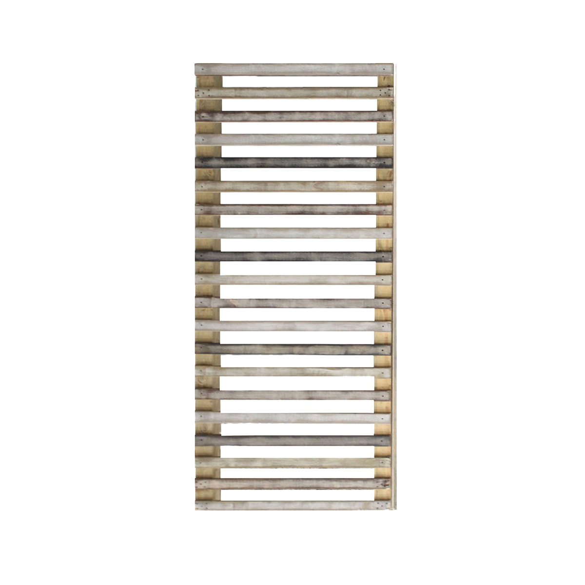 Slatted rustic wood wall with slight variation in slat stains. Single sided.