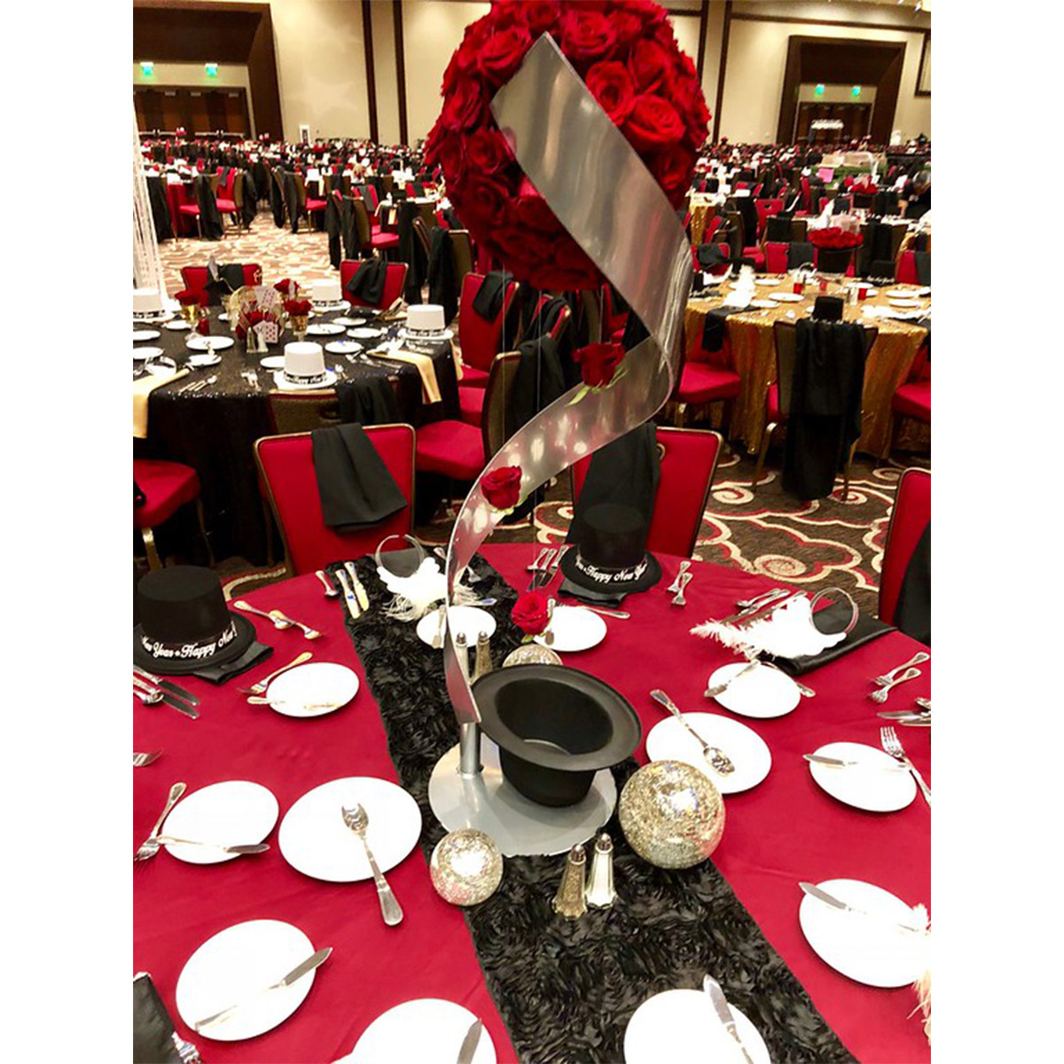 Black & Gold Zephyr Sequin Sheer Table Linen