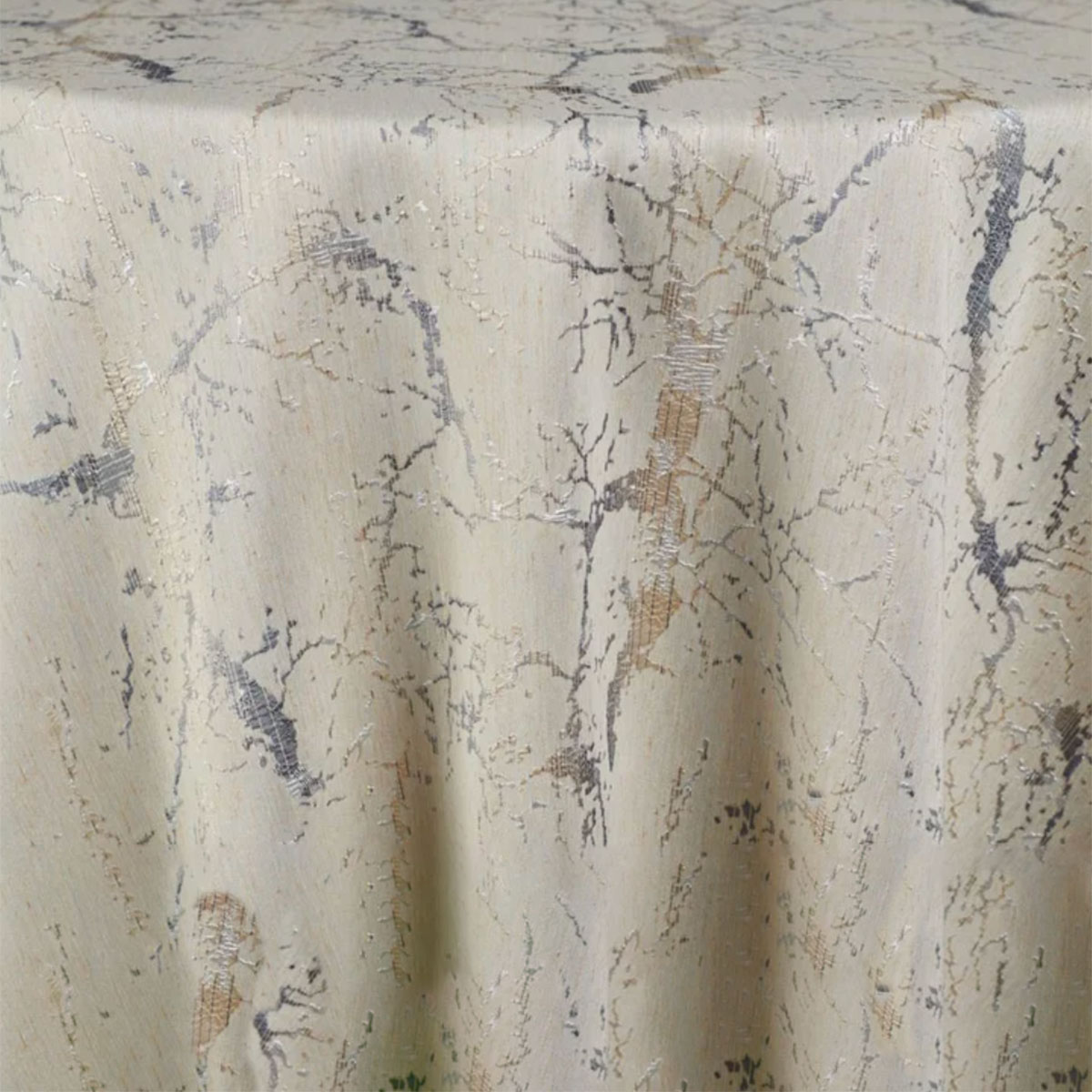 Gold and silver threading woven through the fabric in a marbeled pattern.