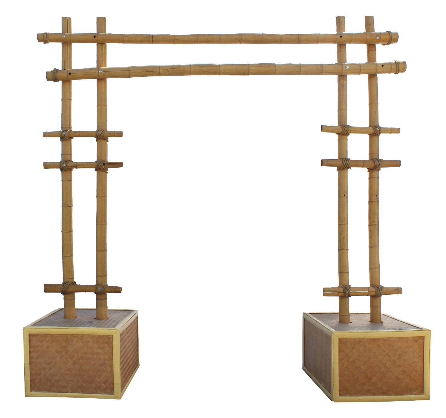 Bamboo criss-cross uprights set in bamboo covered boxes.
