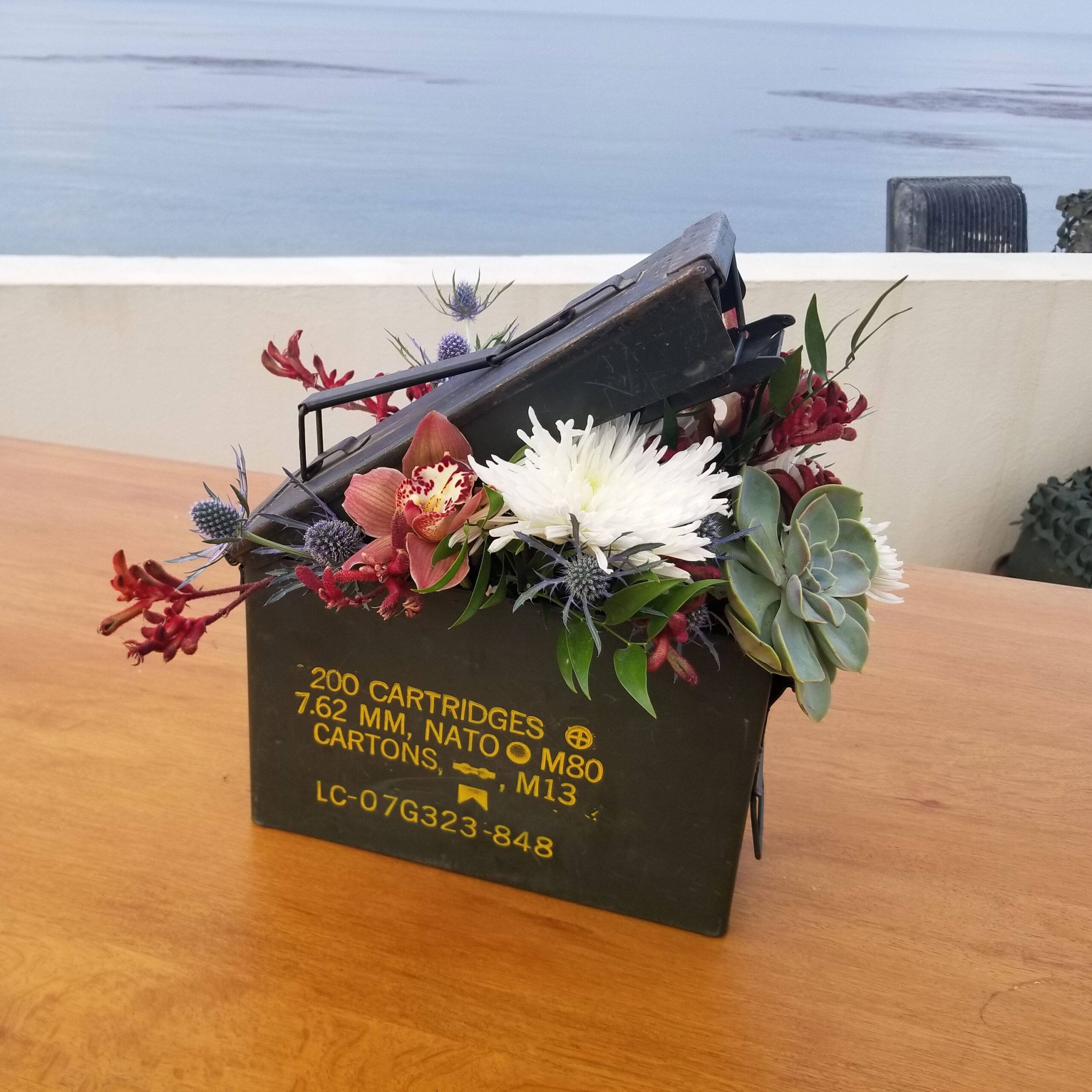 Vintage military ammo container. Tabletop/centerpiece size.