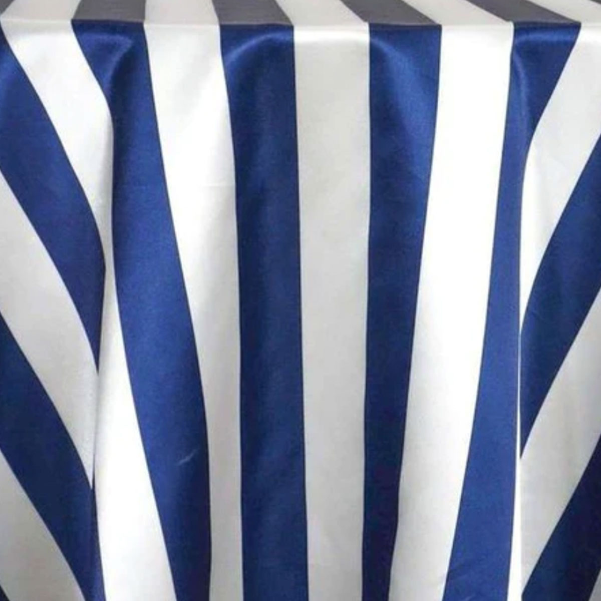 Home / Products / Textiles / Table Linens / Patterned / Navy Satin 2″ Stripe Table Linen