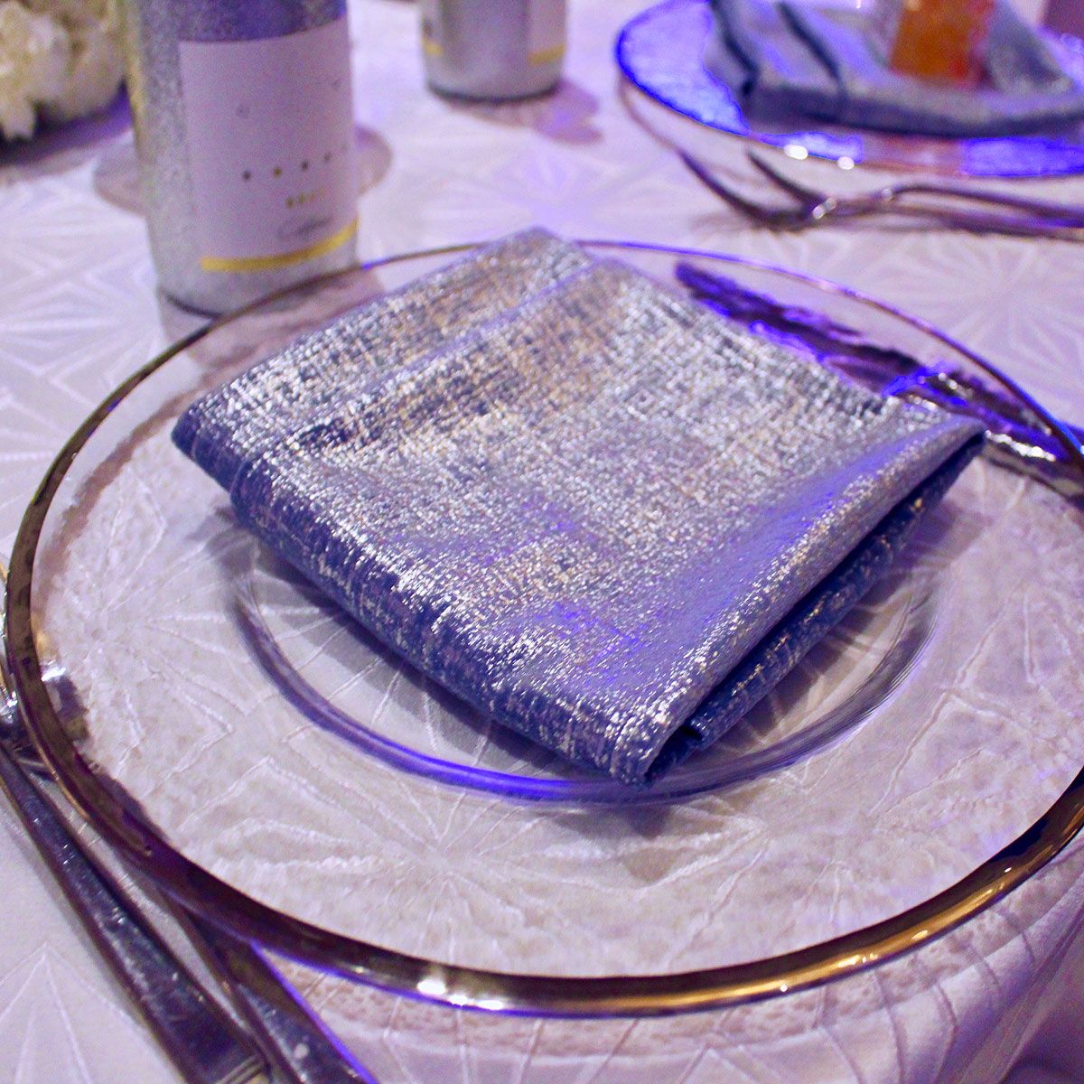 Velvet with metallic silver detailing.