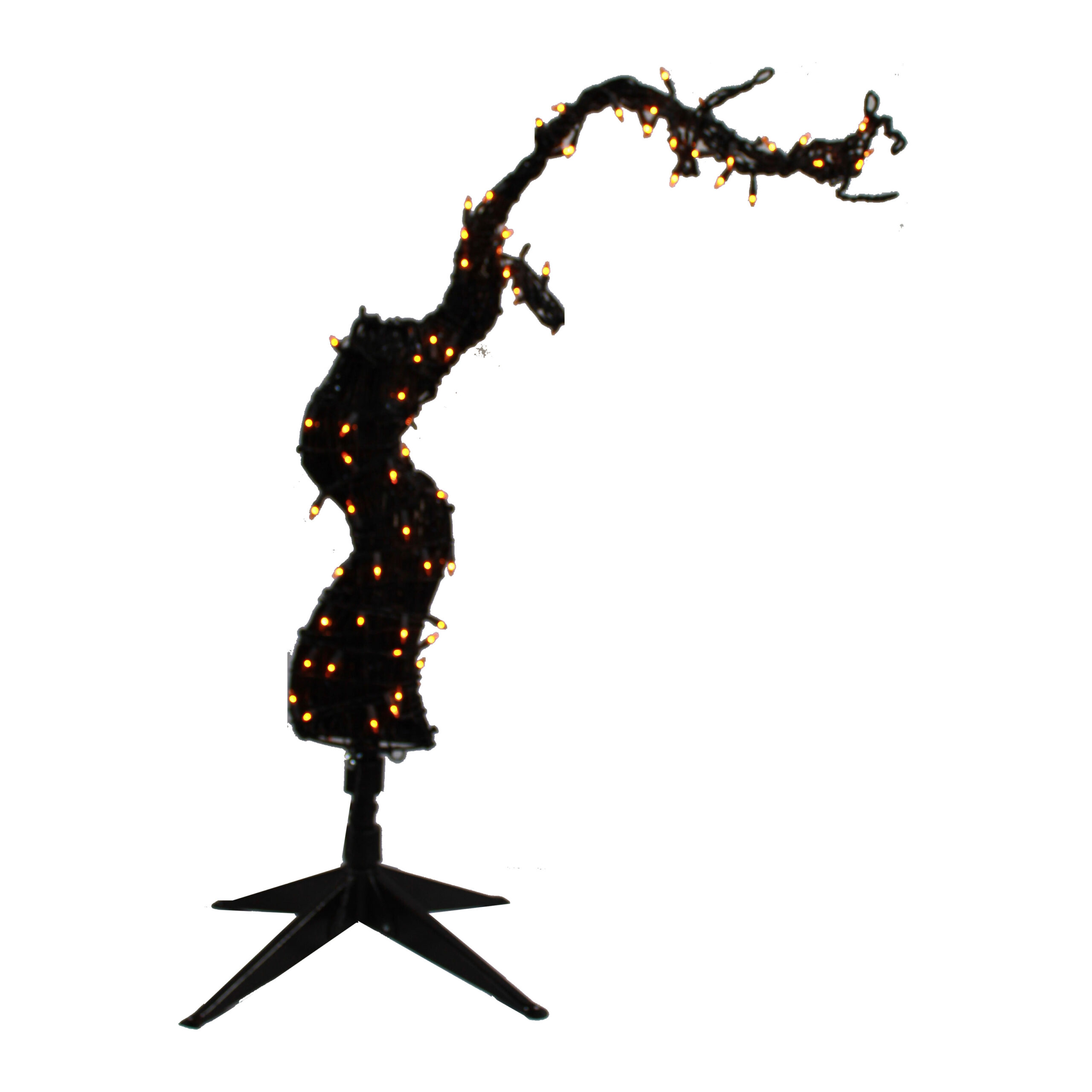 Dark colored grass like branches with orange twinkle lights.