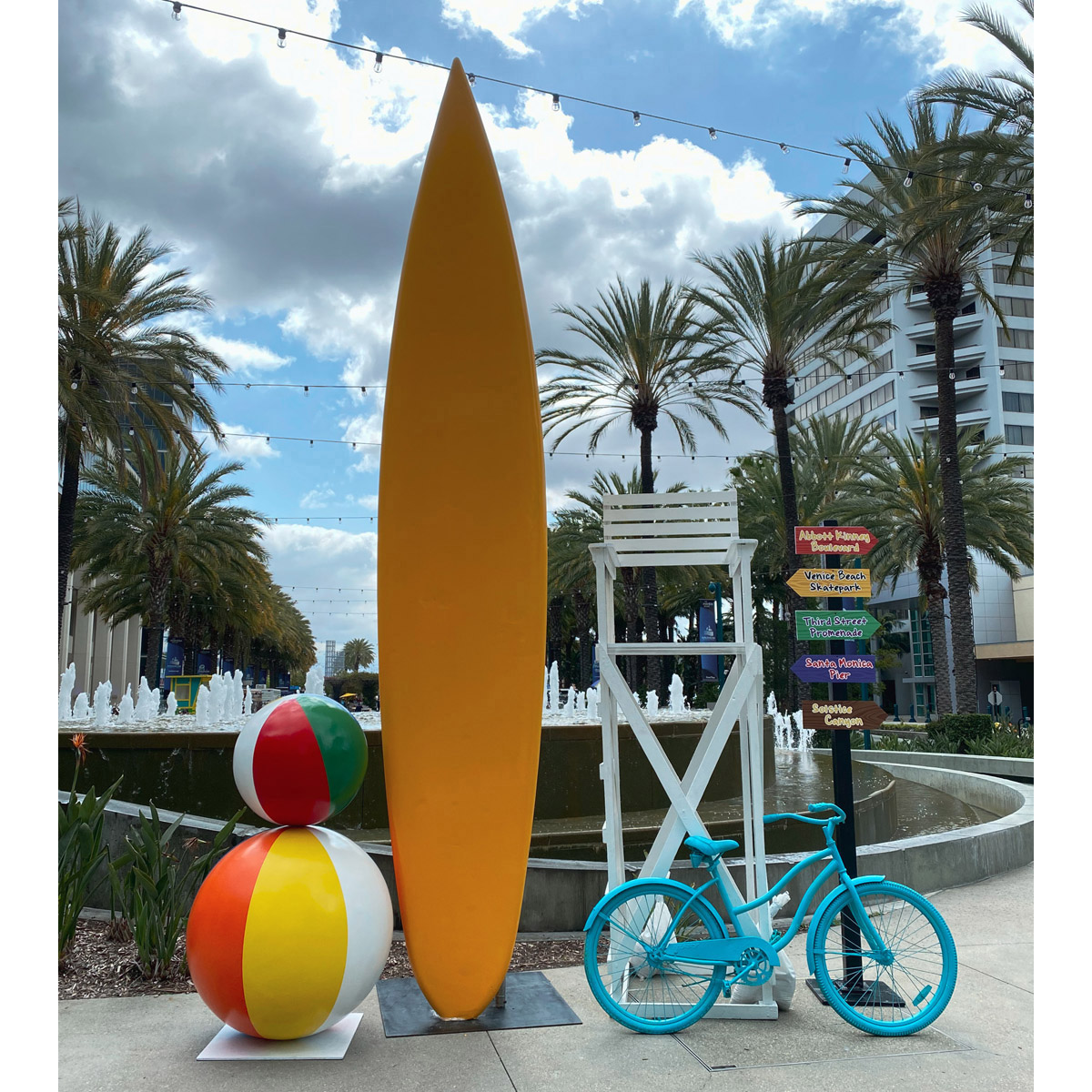Giant surfboard prop. Requires truss rigging and large clearance load-in.