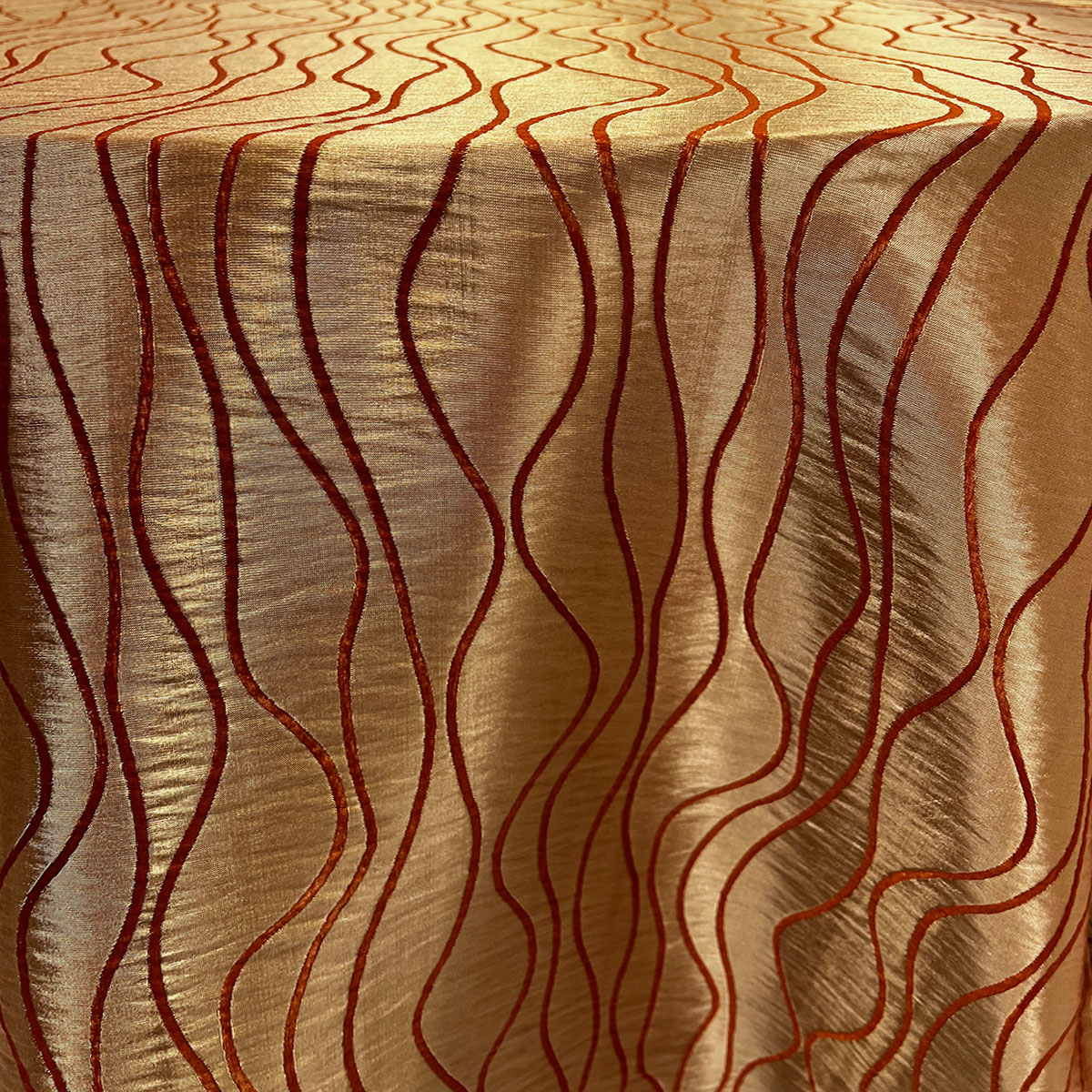 French pleated for a reversible option. Lighter or darker gold/orange with reverse wave pattern. Medium sheen.