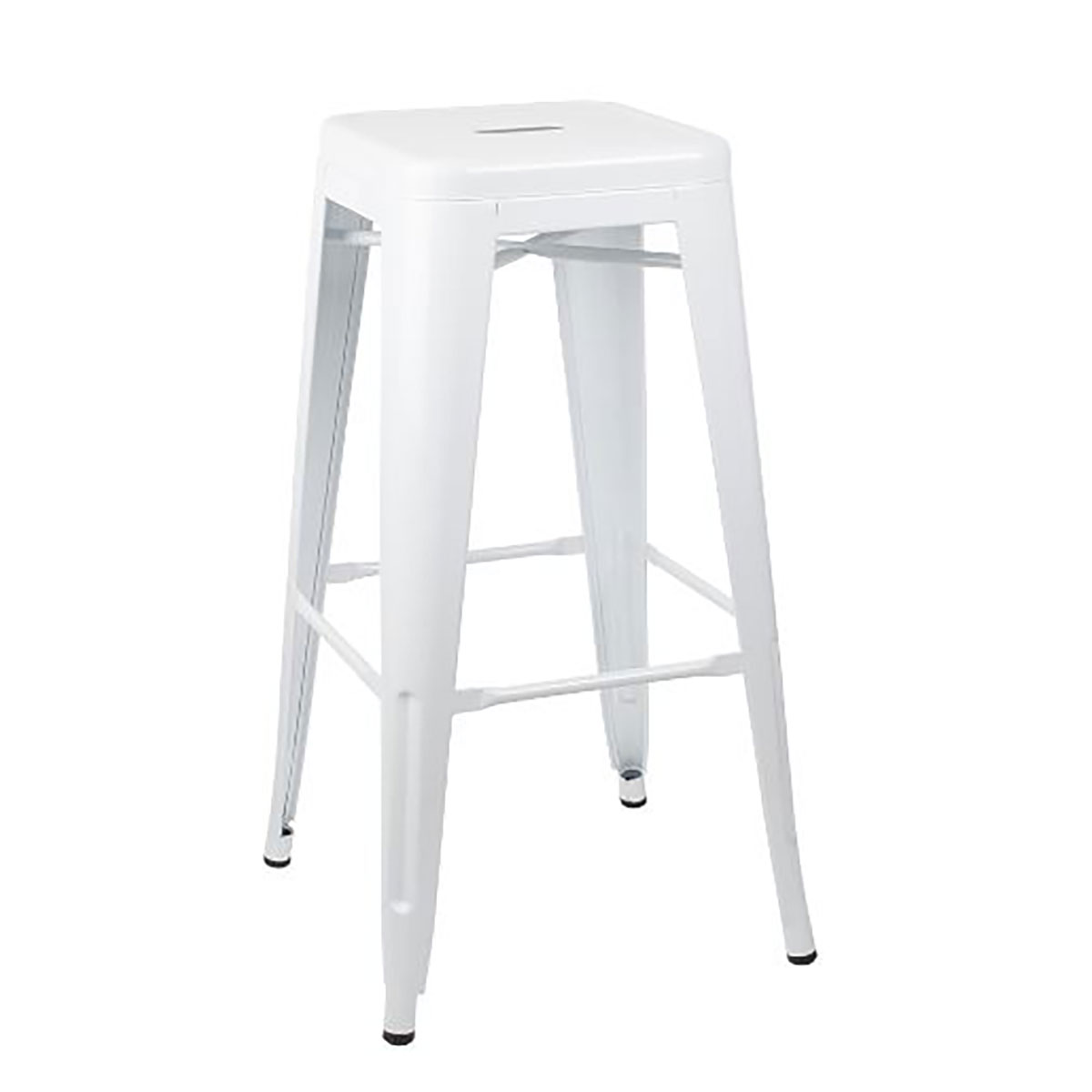Metal bar stool with a gloss white finish.