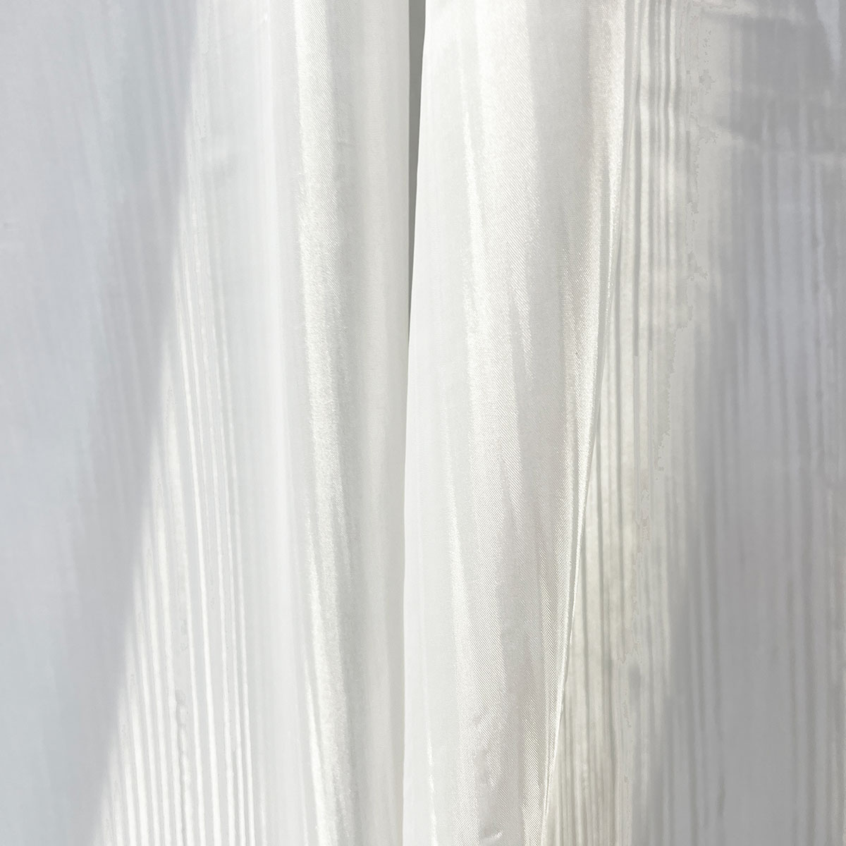 Soft silk-like polyester. Flat, no pleats. Pole pocket top. IFR.